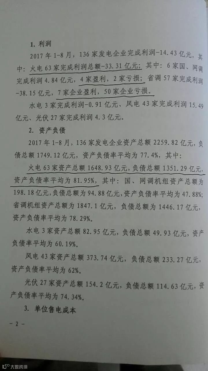 在山西省《关于2017年1~8月电力企业经营情况通报》中提到了,省调火电57家发电企业完成利润-38.15亿元,7家企业盈利,50家企业亏损。这是越来越多省份开展电力直接交易以来,让我们这些吃瓜群众感受发电企业亏损严重最直观的一次。