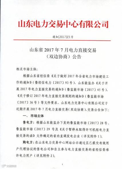 今天(6月26日),山东交易中心发布了7月双边协商交易公告。