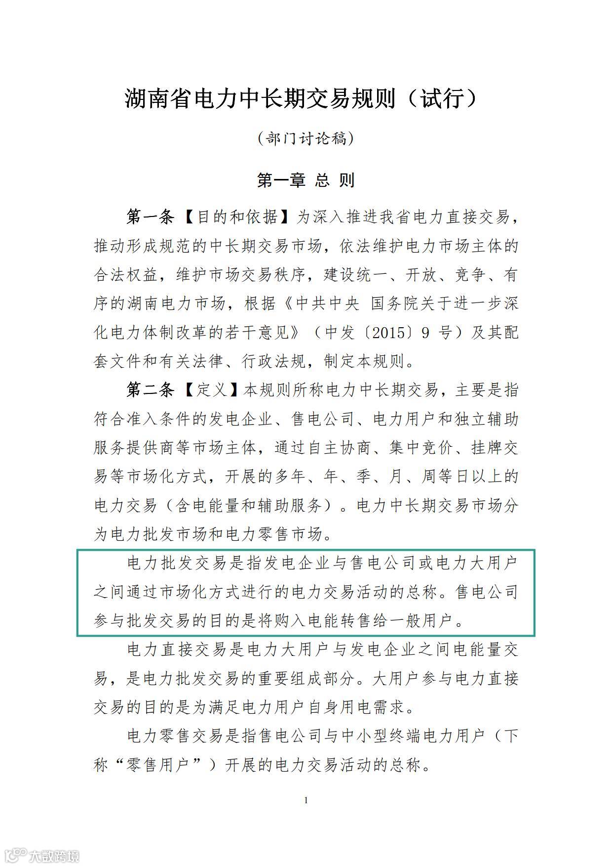 5月22日,湖南省能监办在其官网发布了《湖南省电力中长期交易规则(试行)》部门讨论稿,在这份中长期交易规则中,晶见通过简要的划重点方式发现了不少亮点所在。
