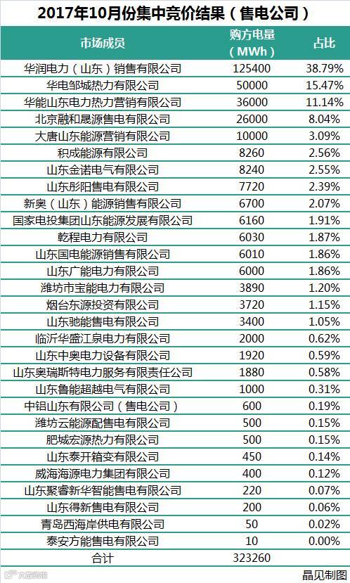 本次交易的需求电量全部成交,统一出清价为0.386元/千瓦时。比9月份集中竞价中的统一出清价0.3885元/千瓦时降了0.0025元/千瓦时。如果用山东省燃煤机组的标杆上网电价0.3949元/千瓦时作为对比的对象,那10月份集中竞价电价大概下降了0.0089元/千瓦时。