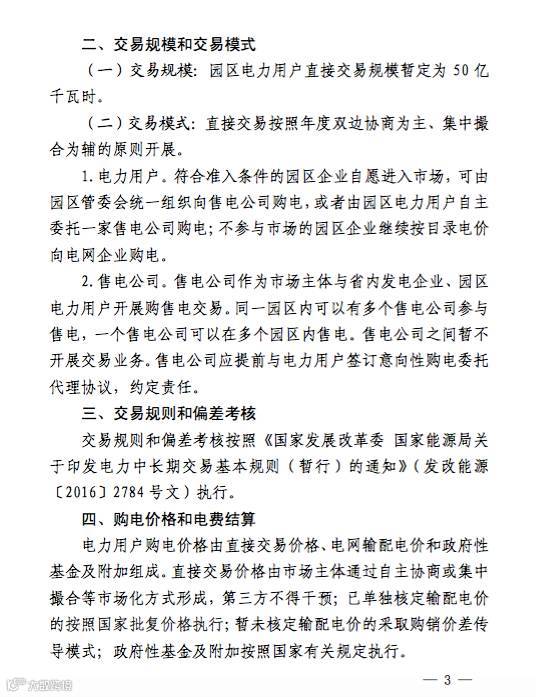4月5日,江西省能源局发布了《江西省能源局关于开展省内工业园区企业委托售电公司参与直接交易的通知》(文末附通知原件),此份《通知》中提到:园区电力用户直接交易规模暂定为 50 亿千瓦时;园区企业自愿进入市场,可自主委托售电公司或者由园区统一打包进行交易;一个园区可有多家售电公司参与交易,一家售电公司也可在多个园区内进行售电活动。