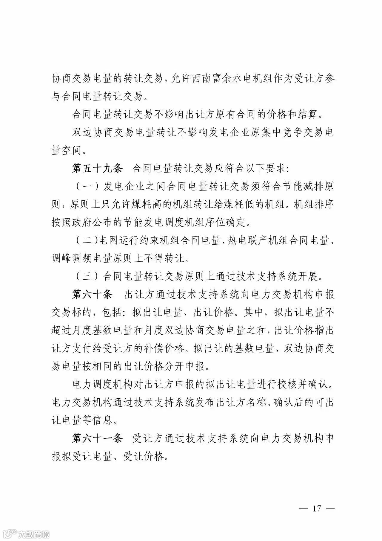 第五十八条增加“双边协商交易电量转让不影响发电企业原集中竞争交易电量空间。”避免个别企业利用规则漏洞;
