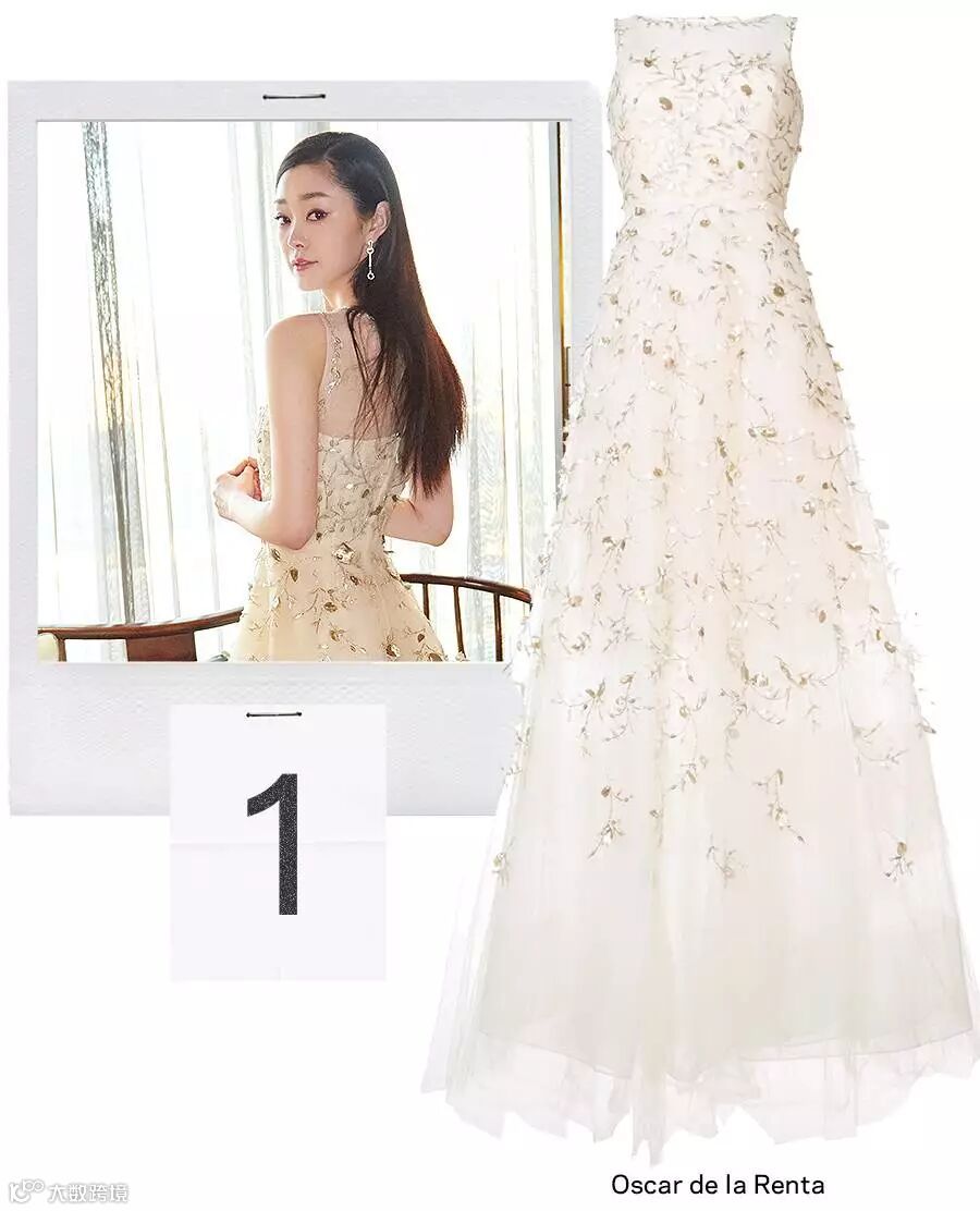 用Oscar de la Renta刺绣礼服搭配Judith Leiber Couture手拿包与Gianvito Rossi高跟鞋,华丽与简约完美相融,将宋轶的精灵感表现得恰到好处。