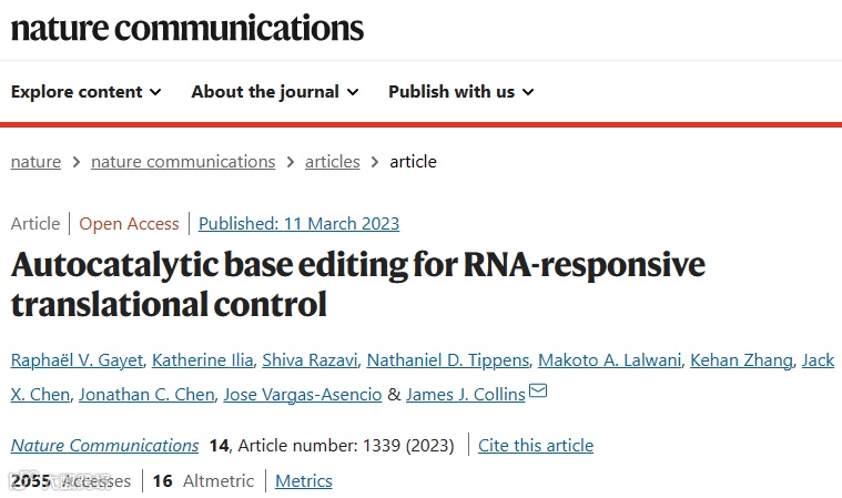 ➤ 2023年3月11日,Nature子刊发表了一篇题为“Autocatalytic base editing for RNA-responsive translational control”的文章,介绍了一种名为DART VADAR的传感器,通过与RNA编辑器相结合,经正反馈回路放大了内源性ADAR编辑信号,小于5kb的大小(包括启动子和终止子)便可以触发自催化,扩大了RNA编辑的应用空间。