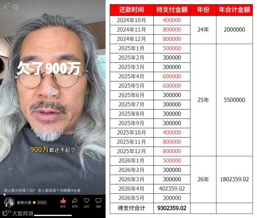 近日,知名广告策划人金枪大叔在近期作品中透露,某老人鞋品牌拖欠一内容供应商900万元。蓝鲸记者核实到,涉事供应商为业内知名短视频策略咨询方,欠款的老人鞋品牌系足力健。