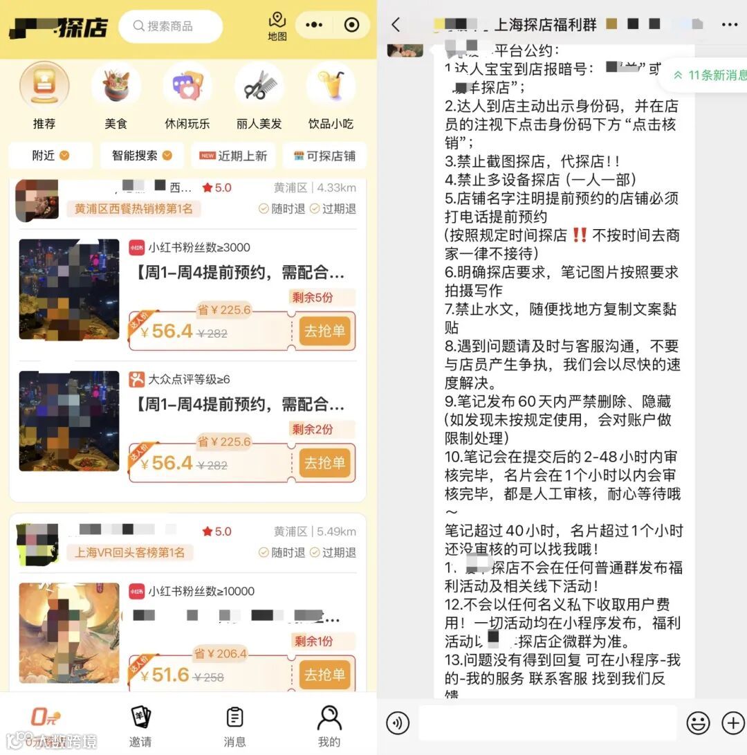 伴随探店进一步产业化,一些专注探店信息分享、商单合作的平台诞生了。因为平台承诺完成笔记后会返还(大部分)团购费用,部分消费者甚至会将这类平台当作低价团购使用。