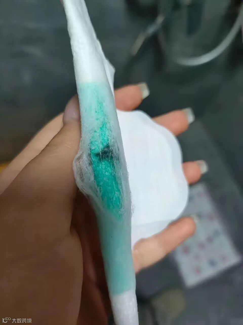 蓝鲸记者了解到,购买该产品遇到问题的消费者不在少数。另一位消费者向记者展示的同款卫生巾上出现了红色污渍,虽然不能确定污渍具体为何物,但已经明显影响到使用。
