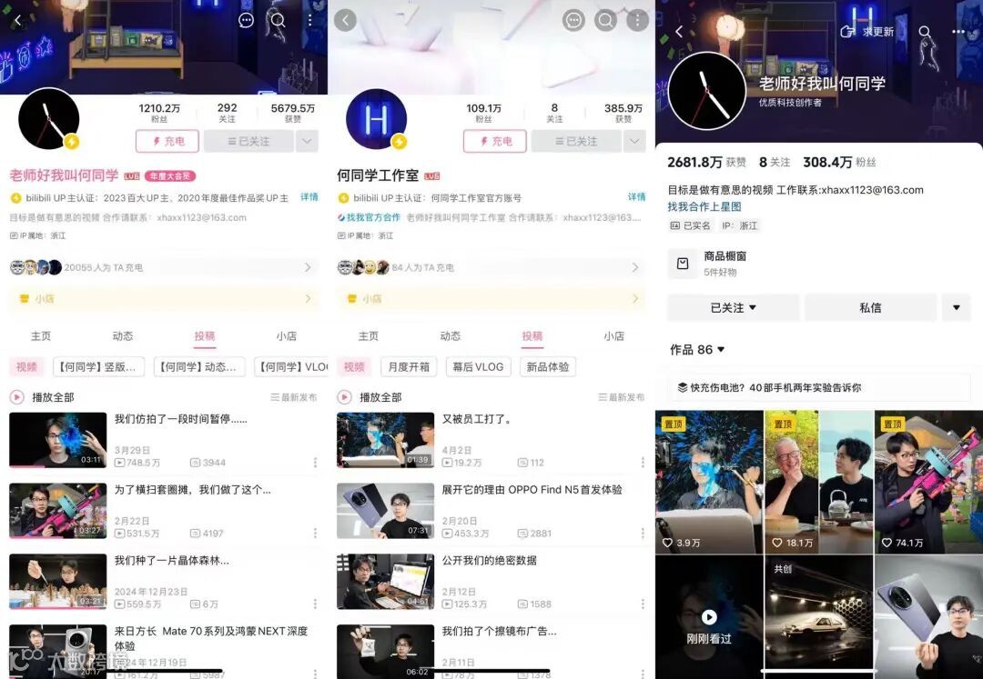 一些改变正在发生。2024年,何同学提高了视频更新的频率,主账号共发布20个作品。此外他的公司账号“何同学工作室”也累积发布了30余个视频,主要做一些数码产品体验、开箱分享、幕后花絮和教程等。做有意思的大项目之外,何同学正在展现更多内容,进一步贴近观众。