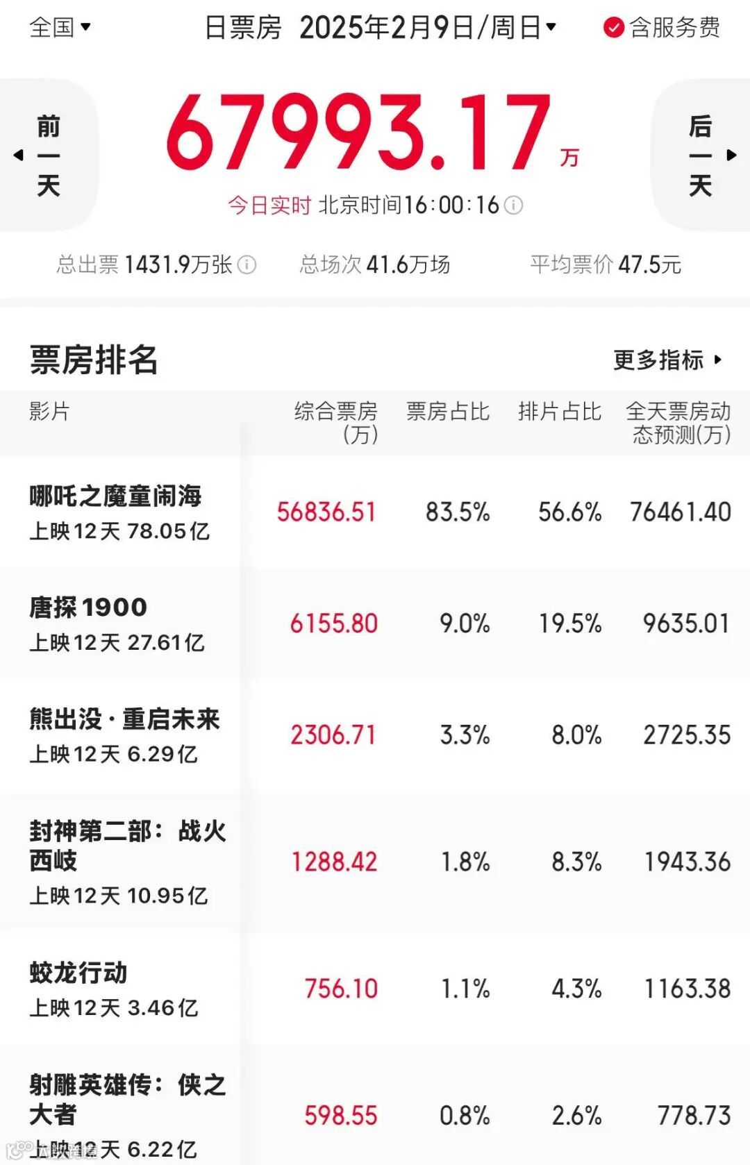 据灯塔专业版数据,截至2月4日19时,2025年春节档观影人次达1.84亿,刷新了中国影史春节档最高人次纪录。关雅荻认为在这种超大档期下,即便粉丝要重复购票,也很难与大众观影规模匹敌。