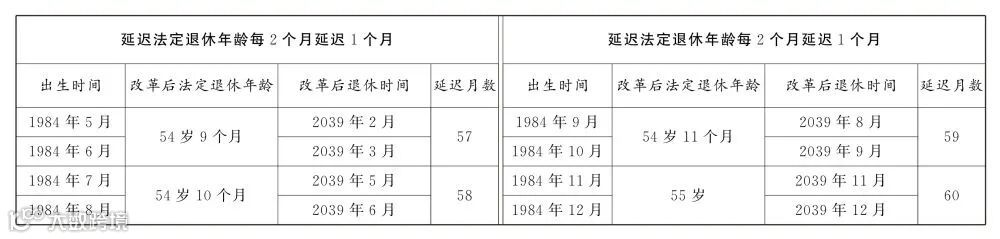 延迟法定退休年龄时间对照表公布
