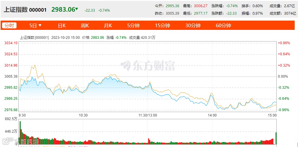 开盘后,沪指在3000点上下震荡,截至收盘,沪指跌0.74%,深成指跌0.88%,创业板指跌0.88%。