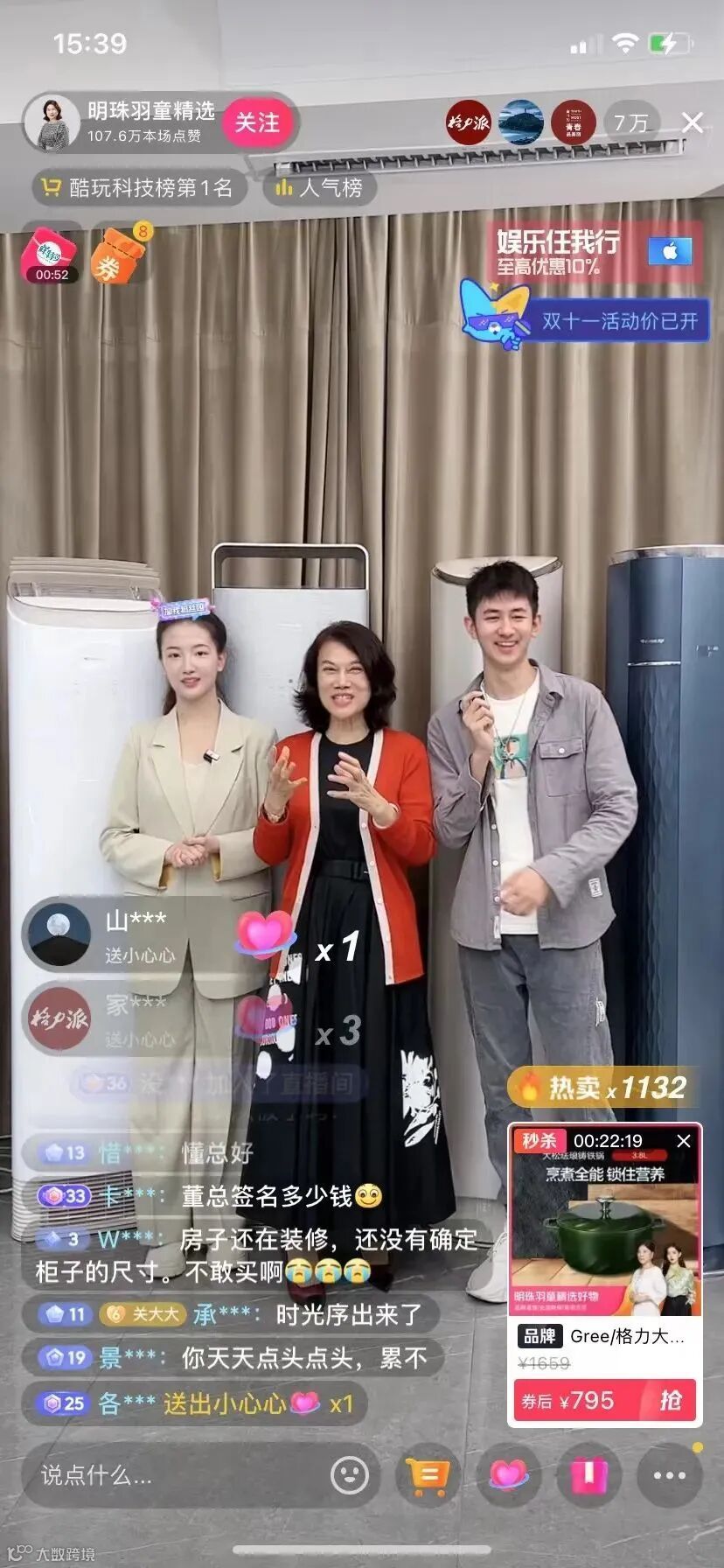 当年11月,有传闻称董明珠秘书孟羽童离职,但双十一前夜二人合体直播打破了这一传闻。据第一财经援引家电业资深人士观点,原来格力想用这位刚毕业的大学生带起格力小家电的销售,现实中估计没有达到预期,孟羽童在格力直播中的角色随之弱化。