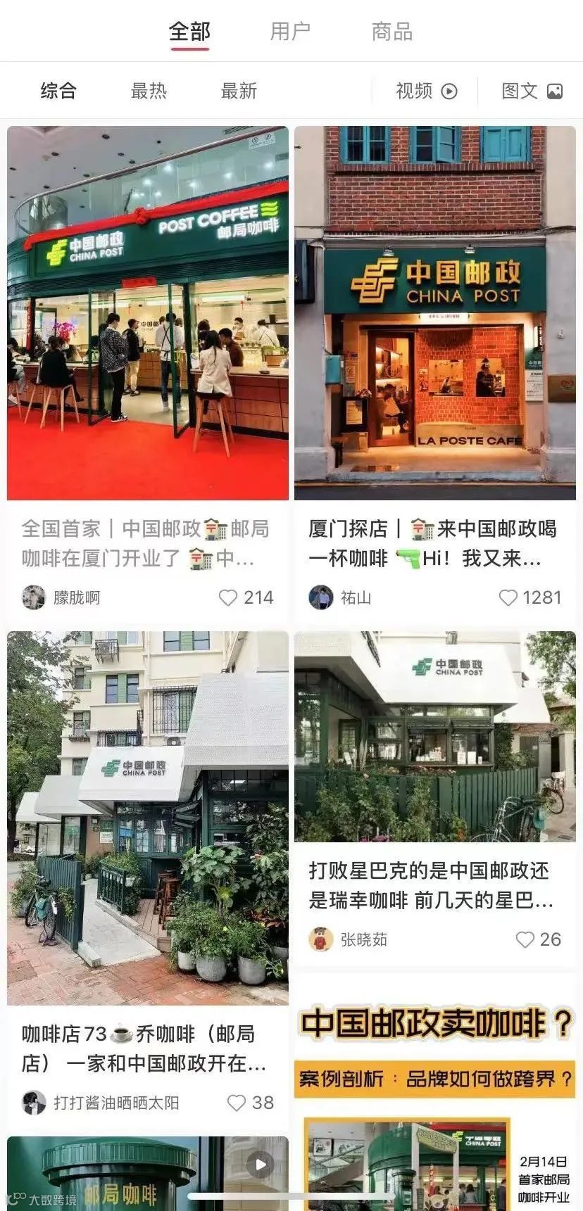 今年二月,中国邮政首家咖啡店邮局咖啡在厦门开业,从门头、拉花到店内设计都在呼应邮政主题。咖啡均价在20元左右,相比口味人们夸得更多的还是创意和颜值。但“国家队”的下海仍然引得众人打卡,成为社交平台一时热点。