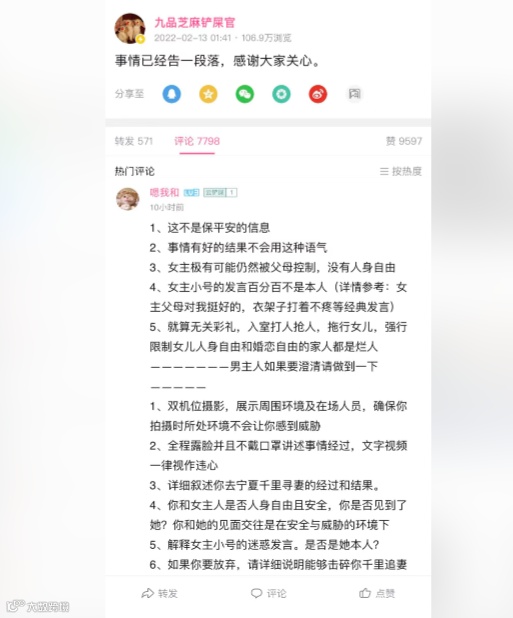就在今日凌晨1点,UP主在个人账号发文称,事情已经告一段落,感谢大家的关心。与此同时,此前发布的《没有50W彩礼,女朋友被强行拖走,我该怎么办》视频已被删除。