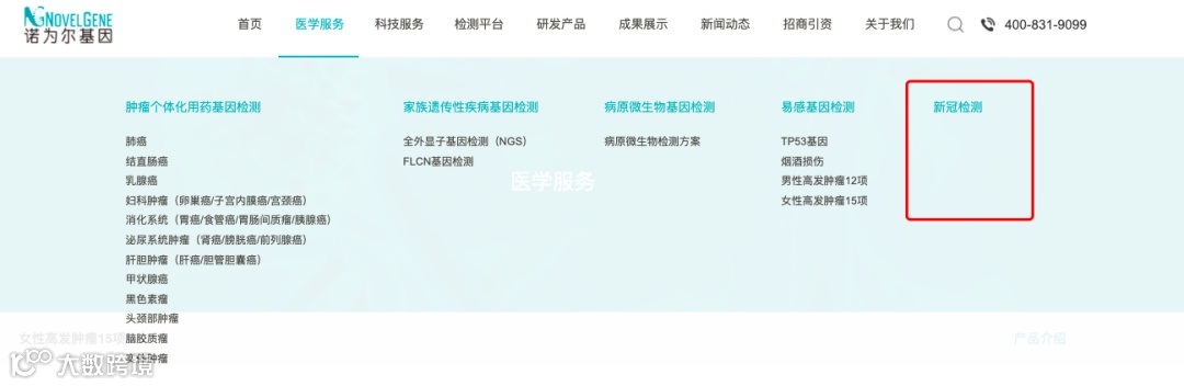 但值得一提的是,该公司官网在肿瘤、家族遗传疾病、易感基因检测等多个项目上均有详细介绍,却唯独新冠检测一栏却没有具体描述介绍。