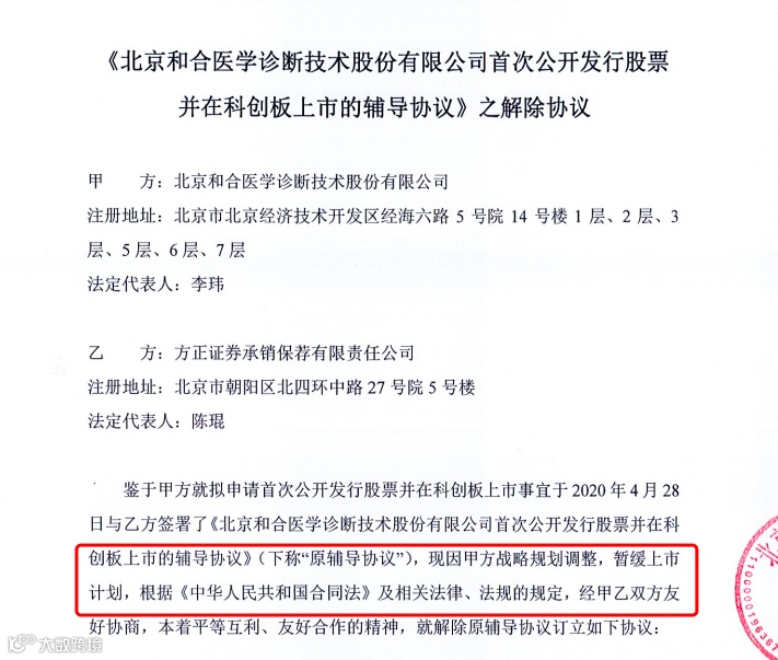 2019年4月8日与东北证券终止辅导协议,4月10日,“北京和合”就与华西证券签署了在科创板上市的辅导协议。结果2019年底,双方又解除了辅导协议。