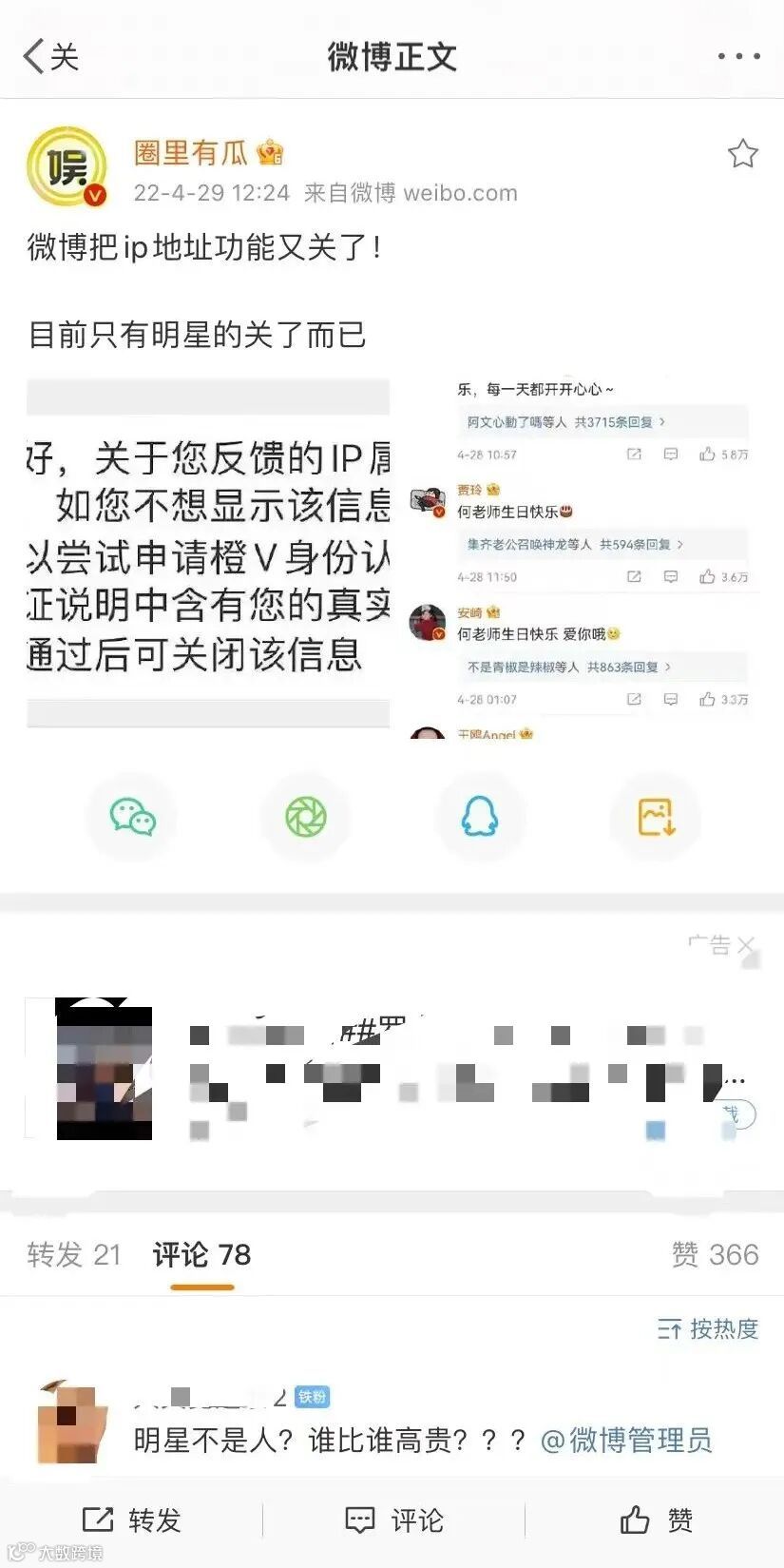 无论帐号背后的是否是明星本人,至少在强制显示IP这一点上,明星和他的粉丝们在评论区达成了身份上的平等。