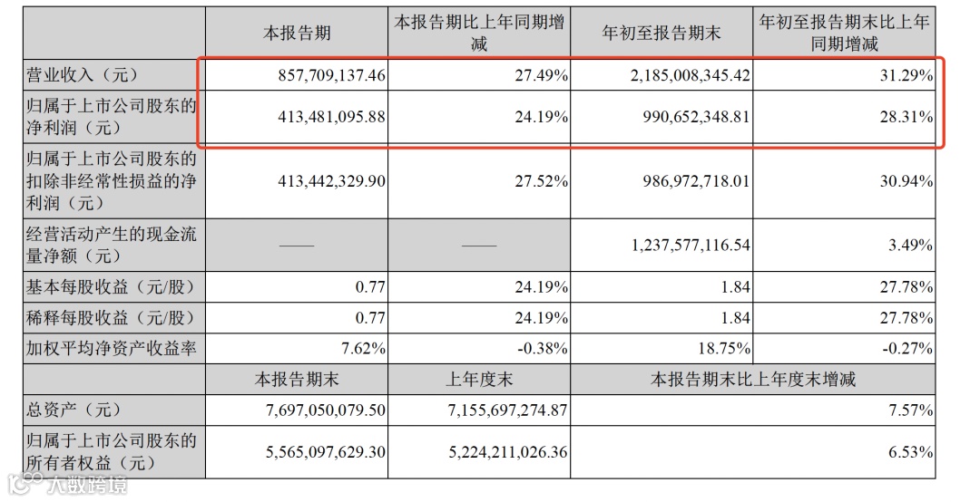 据同花顺最新发布的2021年第三季度报告显示,公司第三季度实现营业收入8.58亿元,同比增长27.49%;第三季度实现净利润4.13亿元,同比增长24.19%。前三季度实现营业收入21.85亿元,同比增长31.29%;前三季度实现净利润9.91亿元,同比增长28.31%。
