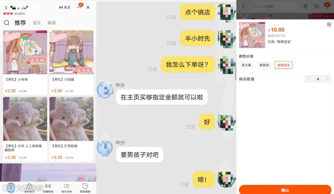 点单店长时,和店铺客服的对话 来源 / 淘宝截图