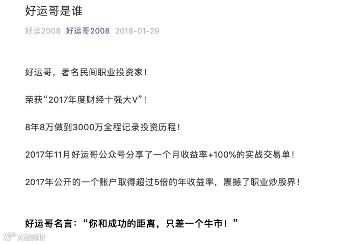 “好运哥”公众号账号全名“好运哥2008”,在公众号好运哥这么介绍自己: