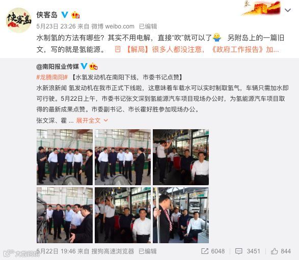 当日,南阳新闻联播也报道这一消息,该消息一出随即引发热议,目前微博上#水氢发动机在南阳下线#、#车载水实时制取氢气#等相关话题阅读量已总计超过百万。通过翻阅评论区可以发现,多数人对该项技术均持否定态度,认为此报道缺乏科学常识。