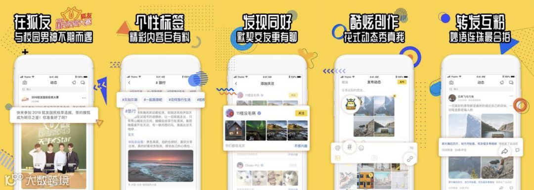 “狐友”并不封闭在熟人社交群里,而是以兴趣爱好为突破口,让用户主动加感兴趣的人。“狐友”发展至今,虽然目前仍在基础建设阶段,属于原始星云团,但已经在年轻群体中逐渐风靡。特别是通过“狐友国民校草、校花”等活动,成功吸引大批年轻团体入驻,已经成为这个沙漠中绿洲的原著居民。同时,大批明星、才艺达人、意见领袖也都活跃其中,“狐友”成为热门话题聚集地。