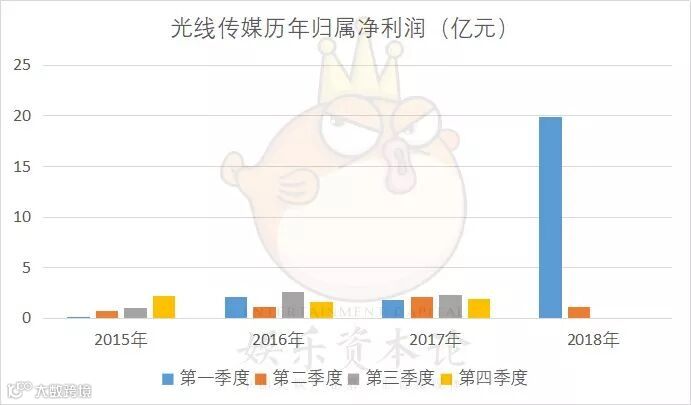利润暴增,主要是因为出售新丽传媒确认的投资收益,核算到净利润中的金额为18.81亿,占利润总额的89.6%;上半年扣非净利润同比下滑了38%。光线似乎在重复华谊卖资产拉利润的故事。
