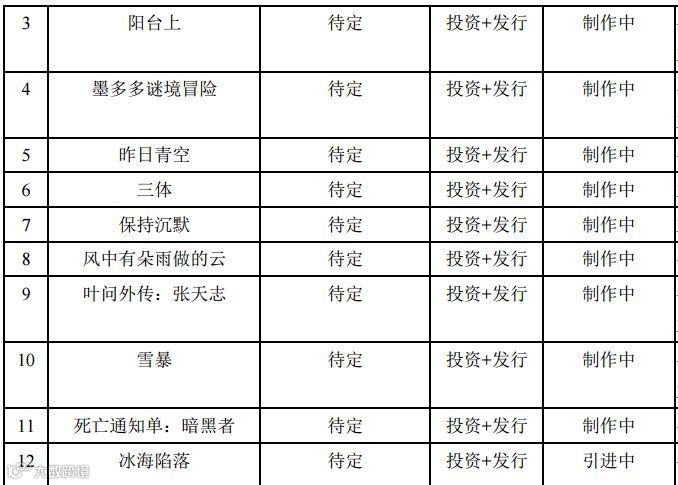 文投控股解释称,业绩下滑的主要原因是该公司主投主控的电影项目及主要参投的电视项目均尚处于投拍或制作开发期,部分影视剧正于暑期档热映尚未下线,因此截至今年上半年,相关影视剧项目收入尚未确认。