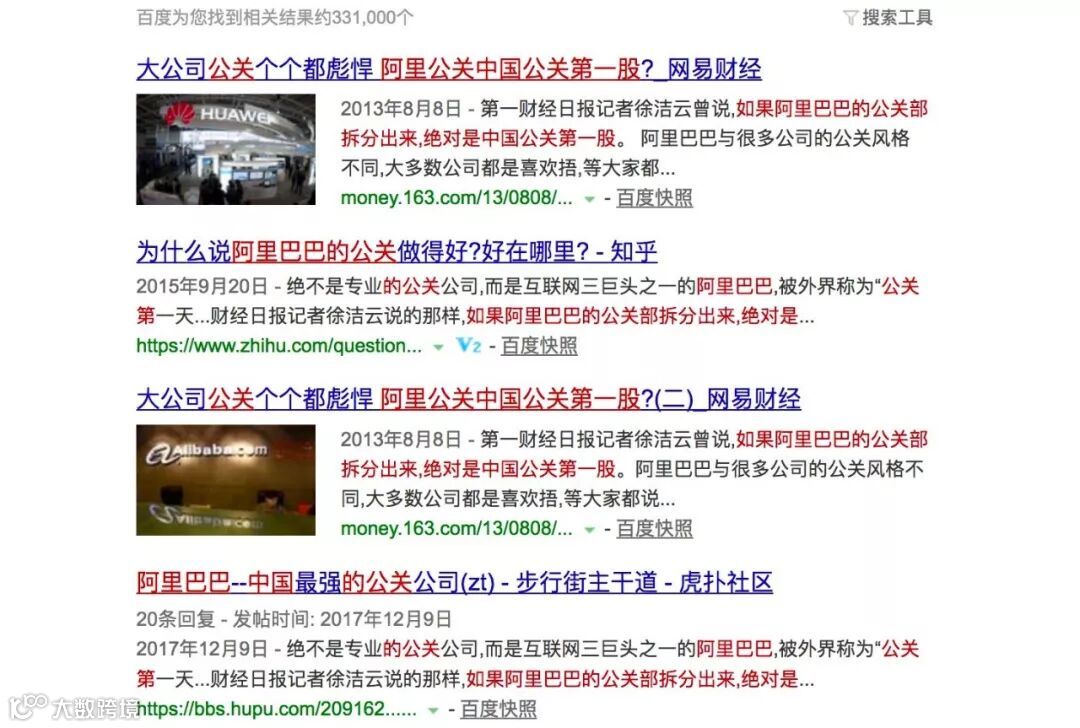 但即便如此,外界对于阿里公关强大的认知几乎都是一致的,此前甚至有言论称,如果阿里的公关部拆分出来,绝对是中国公关第一股”、世界级公关,对阿里公关的吹捧,似乎从来没停过。