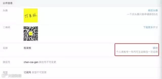 6.个人类型公众号一年内已修改一次名称,可否提前在修改?
