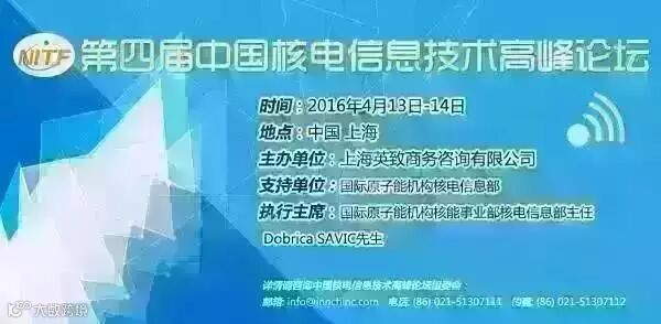 第四届中国核电信息技术高峰论坛(简称“NITF2016”)将于2016年4月13日—14日在上海召开。本次大会由上海英致商务咨询有限公司主办,同时得到了国际原子能机构核电信息部的大力支持。
