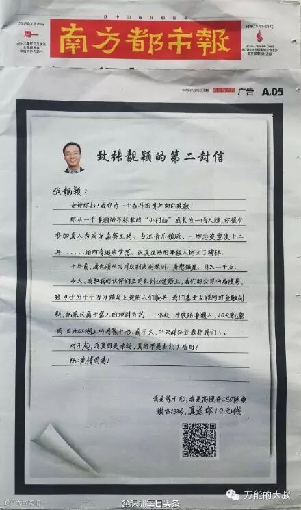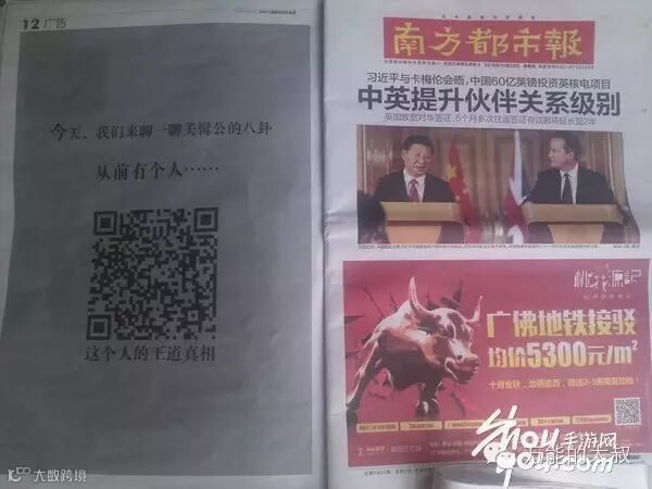 纸媒危机”、“纸媒将死”的言论早已不是什么新鲜事,为数不多的纸媒读者们估计已经适应了在一堆各色广告中扒拉新闻的报纸了。尽管媒体类消费近几年发生了许多重大变化,但消费者似乎仍然很信任印刷媒体之中的广告。于是,不乏有财大气粗的土豪们,随便挥一下手便成就了那些个有钱任性的版面。而在那些传统媒体中,南都绝对算是脑洞最为惊奇的一个。