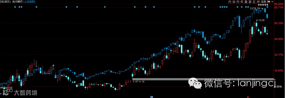 (蓝色代表大盘,青色、红色是光大银行个股)