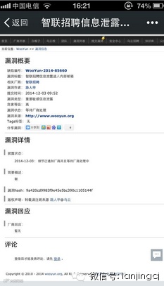 查阅以前的消息,智联招聘在2014年7月份的时候有过一次漏洞,公布时间是在8月16日。