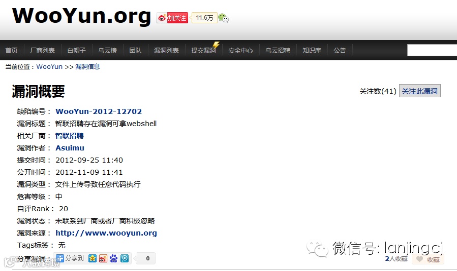 但是截止到此微信发布,乌云漏洞网站的报告仍显示如下情况。漏洞类型: 重要敏感信息泄露。危害等级: 高。