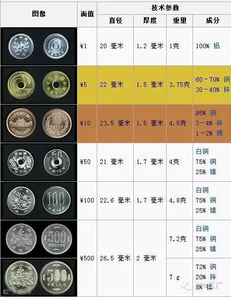 日元硬币参数▼