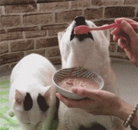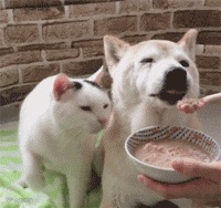 主人给Shino喂食时,Kuu也会在一边跟着捞几口吃