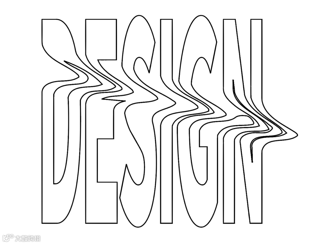 在画板中选择封套扭曲工具将文字进行扭曲,调节到相应的参数,可以得到简单又具设计感的扭曲效果。