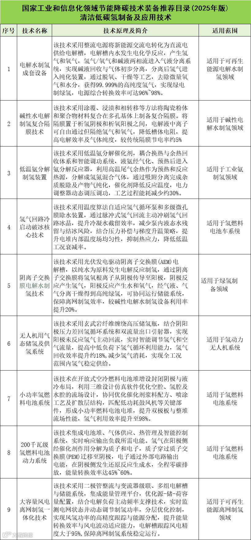 根据目录,国家工业和信息化领域节能降碳技术装备推荐目录包括9项清洁低碳氢制备及应用技术。分别是: