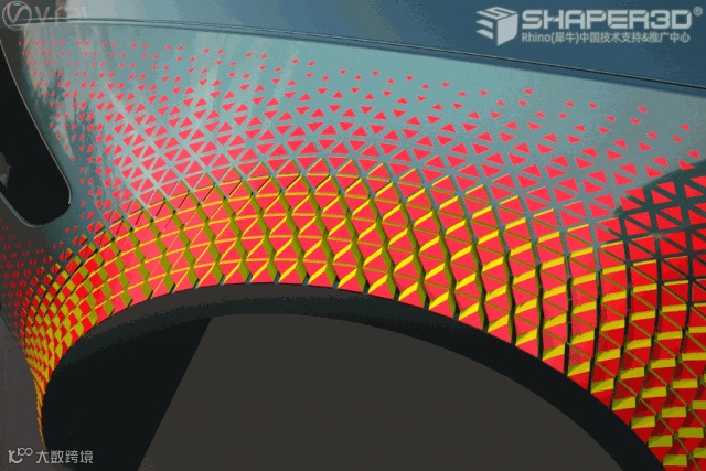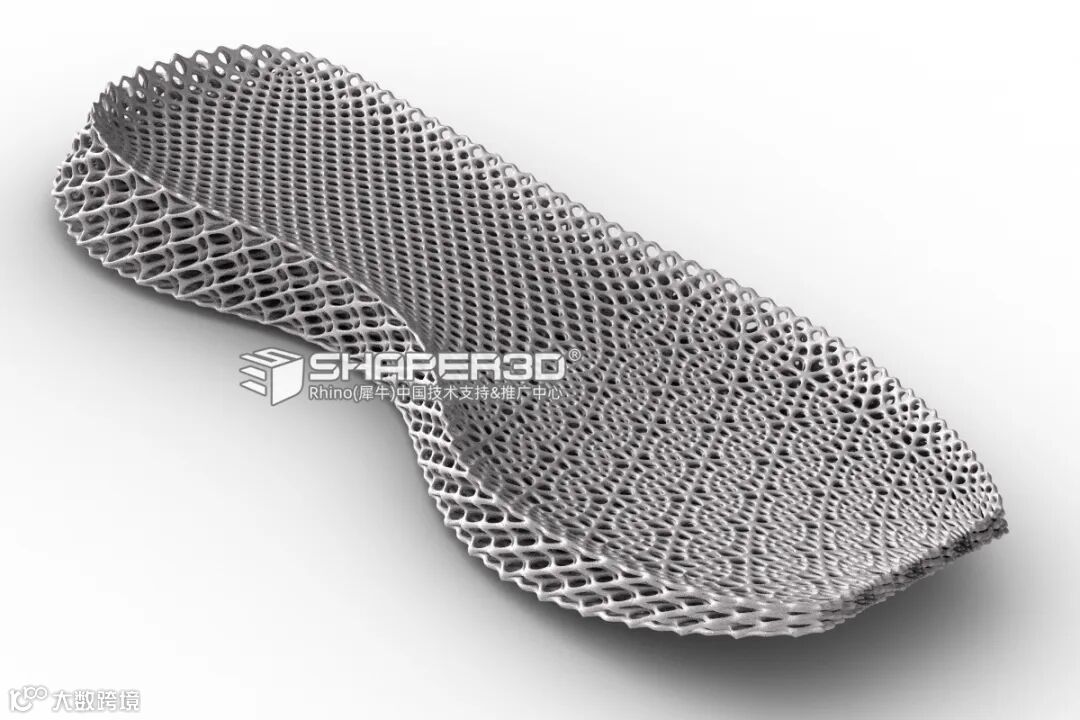 与前面介绍的基于表面的设计不同,配合3D打印的参数化设计很多是在形体的内部而不仅仅是表面设计各种效果和形式的空心结构。本课程在鞋业类课程中将会介绍于此有关的参数化设计实现方法以及相关周边技术。