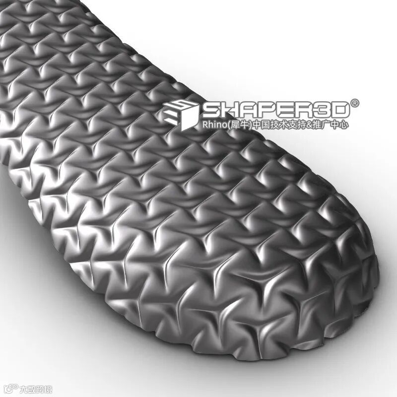 鞋业的参数化需求主要是在鞋面和鞋底制作具有很明显的凹凸甚至是浮雕的的几何花纹,因此侧重点会有所不同。在这里更加侧重介绍如何基于一些基本纹理发展明显凹凸化的几何纹理形态。