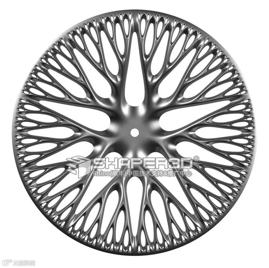 一个很典型的参数化方法的轮毂造型,其中会涉及到一些行业中周边相关技术的结合运用,例如结合SubD (细分曲面技术)进行形体的制作。