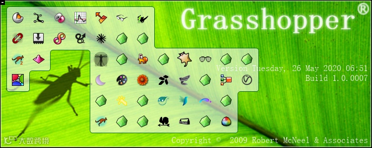 插件的文件复制进插件目录之后,需要重新启动Rhino和Grasshopper才能载入新安装的插件。如果安装成功即可在启动的 Grasshopper 界面中看到新载入的插件,注意某些插件会有独立的工具标签而有些并没有。例如meshtools插件只是在mesh工具标签中增加了一些组件,并没有独立的标签组。