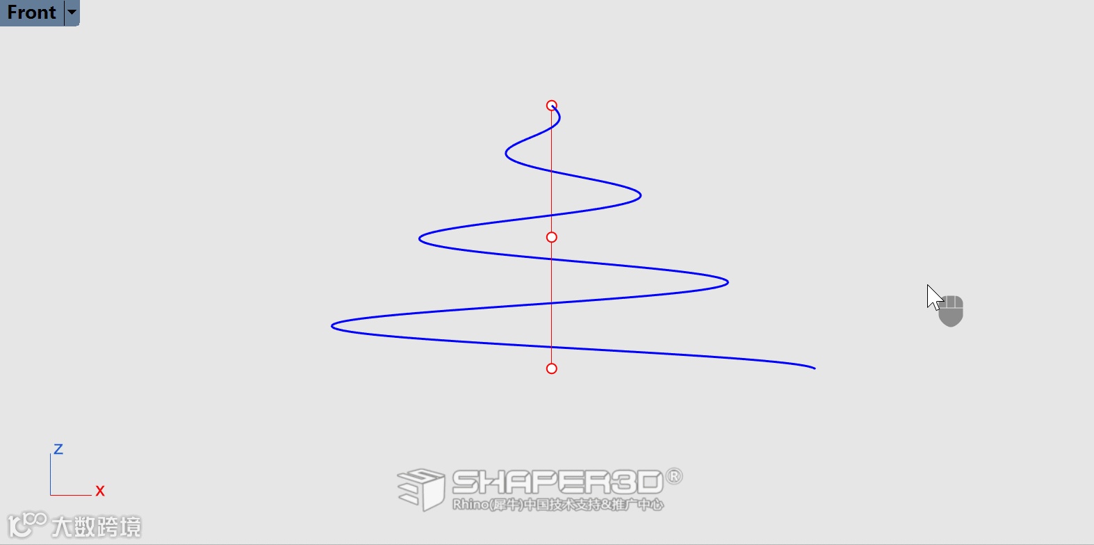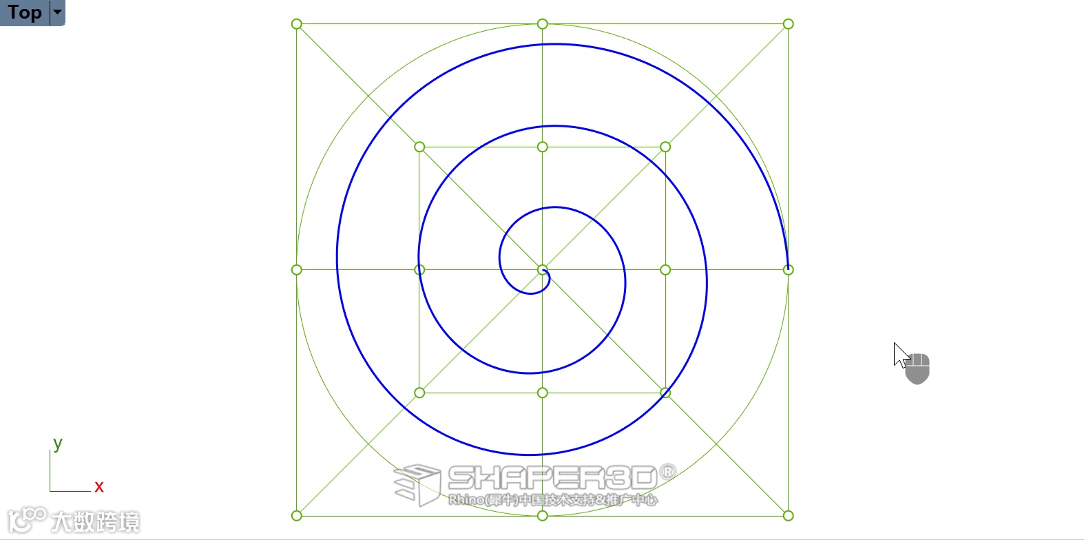 使用Rhino的螺旋线工具(指令: Spiral)绘制螺旋线: