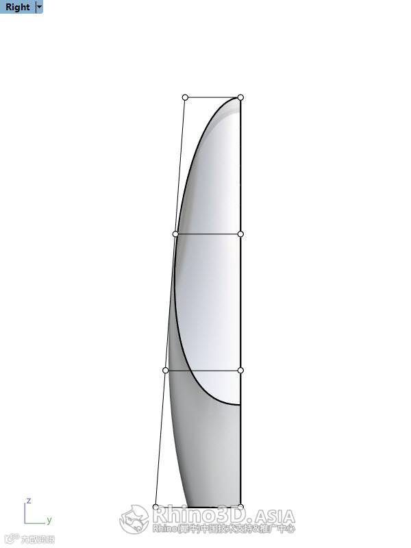 我打算把这个瓶子拆1/2来做,考虑到截面未必是标准的椭圆,且后期能很好的调整,因此,用 可调式混接曲线(BlendCrv) 重新生成一条截面线;