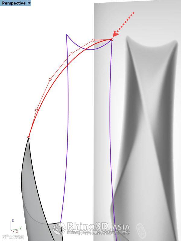 借助建构历史,可以通过调整最初始的截面曲线形状来改变曲面形态。