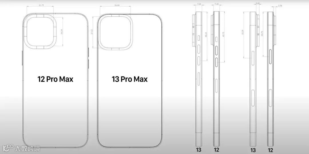 主要变化集中在尺寸上,iPhone 13 Pro Max和iPhone 13 mini摄像头模组变得更为硕大,整体也会更加突出,机身厚度也会相应增加