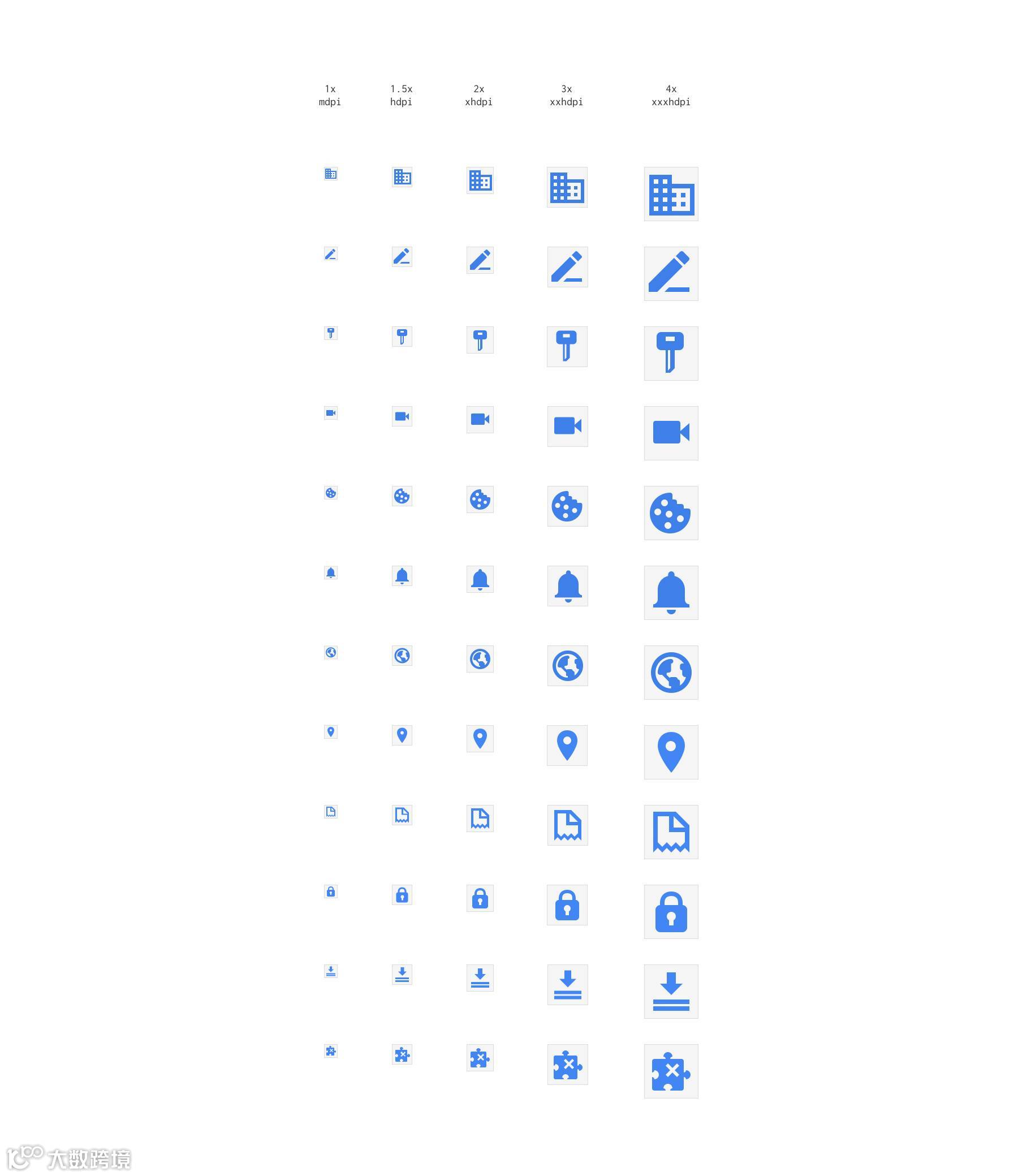 谷歌material design要求每个有色图标都作为自成一套,每套一个颜色,这样可以让色彩达到上千种,包括各种颜色和dpi。