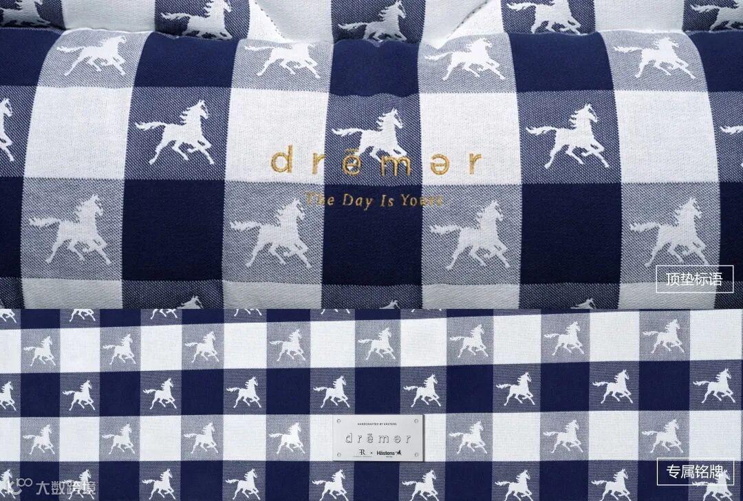 顶垫尾部点缀有“drēmər,The Day Is Yours”(追梦者,每一天都属于你)的标语,底座上的镀银黄铜铭牌刻有drēmər字样及海丝腾与设计师的logo,体现了海丝腾与设计师对定制细节的极致追求。此外,追梦床还可搭配拥有独特嵌边设计的床头板,黑或蓝两种色调的定制漆木床腿,与任意卧室风格相得益彰。