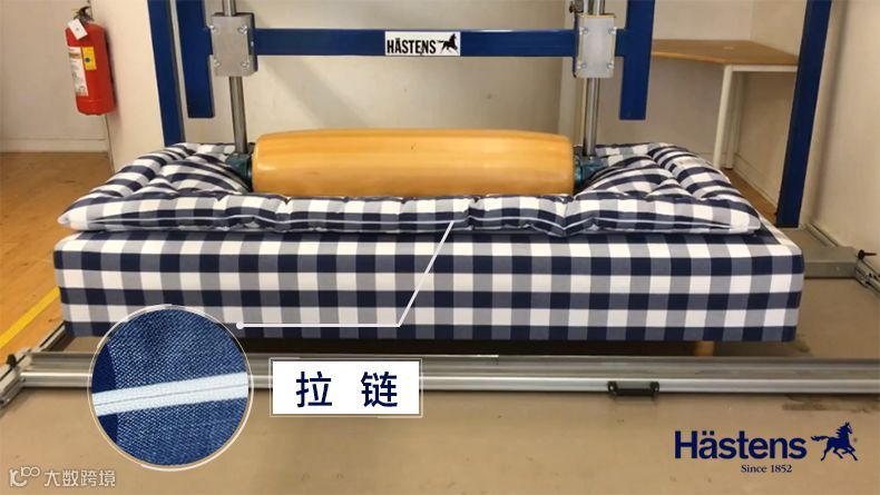 将纯天然的亚麻和精密的弹簧附着在床架上,